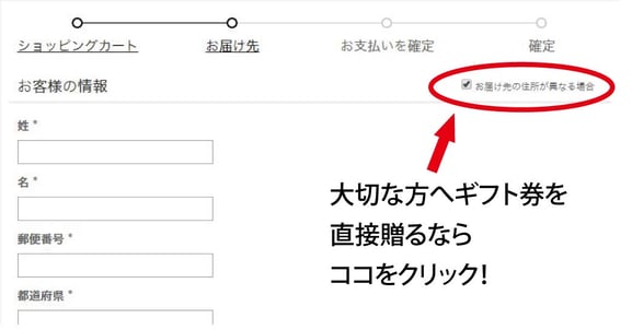 「お届け先の住所が異なる場合」をクリックしてください。
